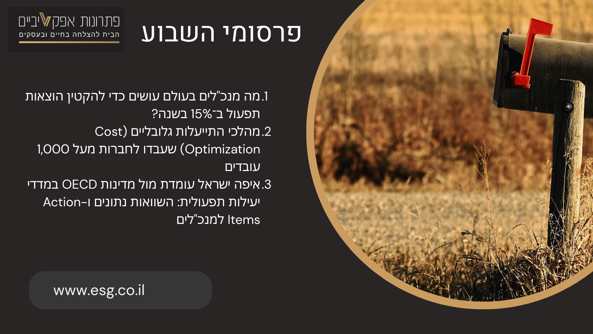 פרסומי השבוע המנכ״לים המובילים בעולם כבר מיישמים מהלכים שמקטינים הוצאות תפעול ב־15% בשנה, משפרים יעילות בארגונים של אלפי עובדים ומציבים סט...